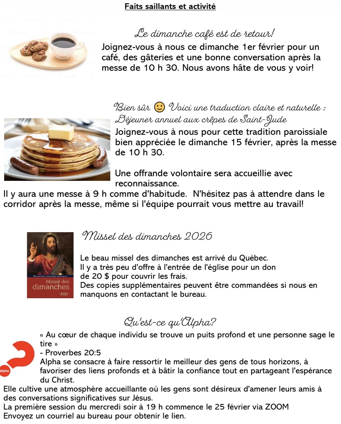 We simply ask that you pray on this - what is your gift so graciously given by God and how can you help to build up His ministry here at Paroisse St Jude Parish.